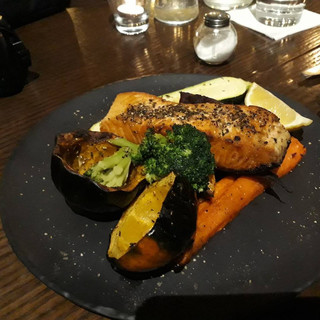 אני אכלתי כמנת פתיחה את הפלאפל קינואה סלטון חמצמץ של חסה גמבות בצל סגול וצ'יפס כרישה עם טחינה לבנה שהיה קריספי וטעים להפלא. מנה עיקרית דג סלמון עם ירקות בתנור שהיה טעים ולקינוח קרם בורלה ועוגת קרמבל תפוחים הקינוחים טובים אבל לא מיוחדים.
