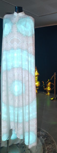 אפרת קליג מעצבת אופנת העילית יצרה את גרסתה למלכת הארמון המודרנית ״כשמזרח פוגש מערב" בשמלה בגזרה אלגנטית צמודה עם גב חשוף עשיר ושובל ארוך כיאה לנסיכה. הבד בעל עיטוריי אורנומנטיקה אתנית אוריינטלית נוצץ רקום בטכניקה חדשה של התזת חול על טול.